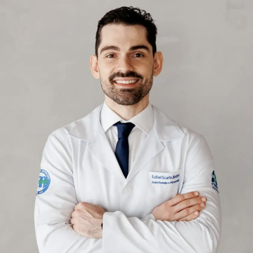 Dr. Rafael Scarin Borges é médico formado pela Universidade Estácio de Sá (UNESA – RJ, 2017), com especialização em Clínica Médica pela Santa Casa de Misericórdia de Ribeirão Preto (SCMRP, 2020) e em Endocrinologia e Metabologia pelo Hospital das Clínicas da Faculdade de Medicina de Ribeirão Preto – Universidade de São Paulo (HC-FMRP/USP, 2022). Possui título de especialista em Endocrinologia pela Sociedade Brasileira de Endocrinologia e Metabologia (SBEM) e está cursando MBA Executivo em Administração: Gestão de Saúde pela Fundação Getúlio Vargas (FGV, conclusão em 2025). Atua como endocrinologista e é coordenador médico do Departamento de Clínica Médica do Hospital Municipal de Aparecida de Goiânia (HMAP), sob gestão do Hospital Israelita Albert Einstein.